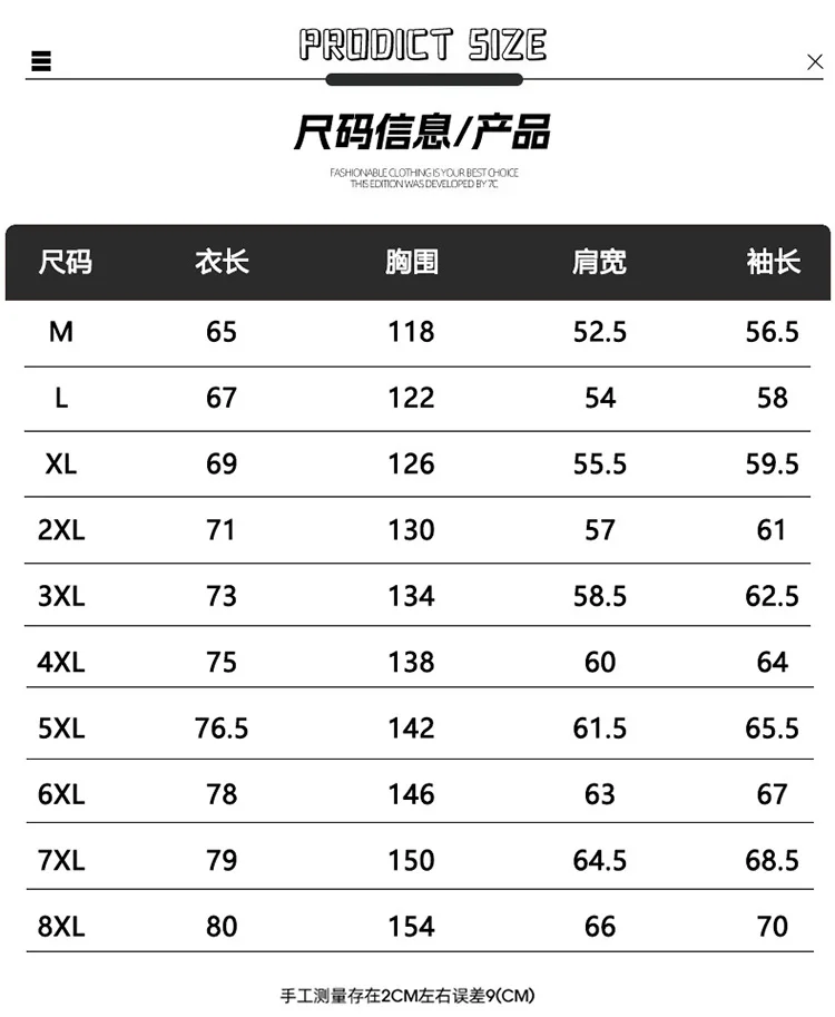 (When purchasing clothes from China, it is important to look at the size chart. Look at the chest size on the chart, measure your own chest size, and then add8-12centimeters to determine the chest size of the clothes)