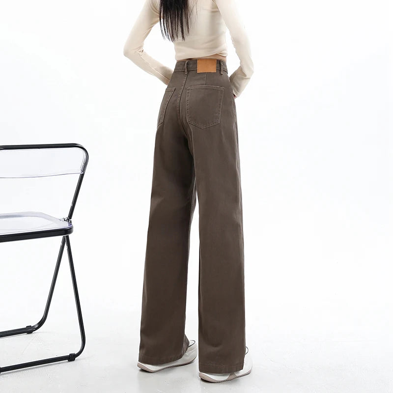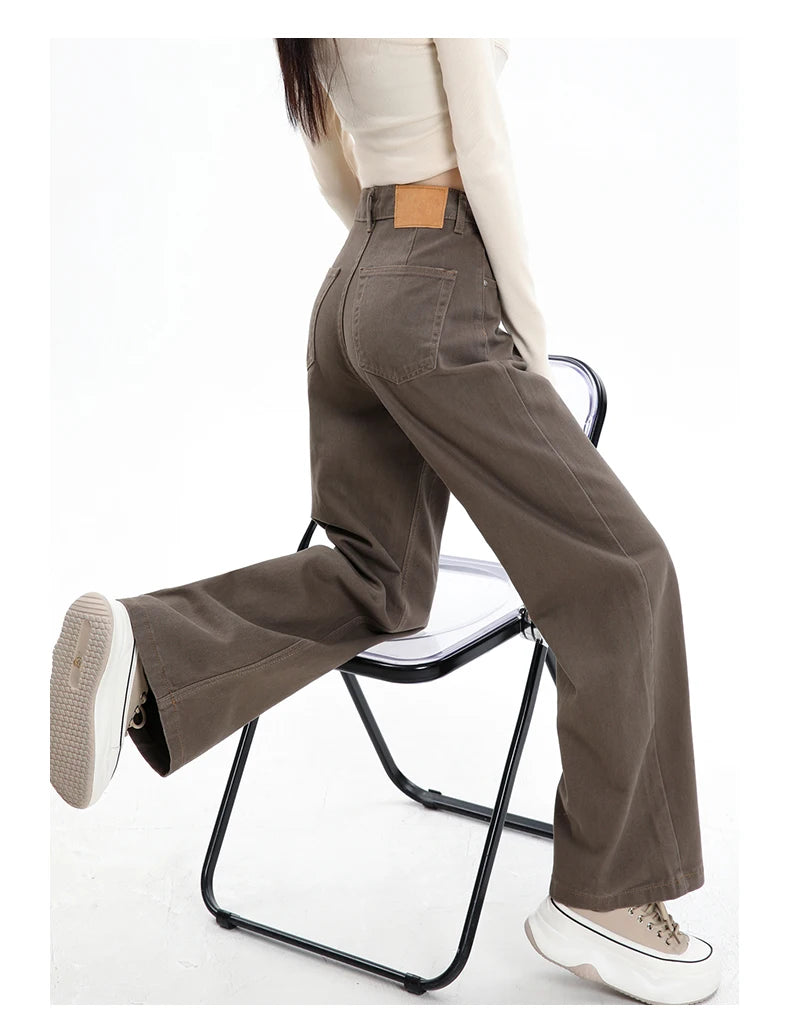 Baggy High Street Fashion Straight brown Jeans for Women&