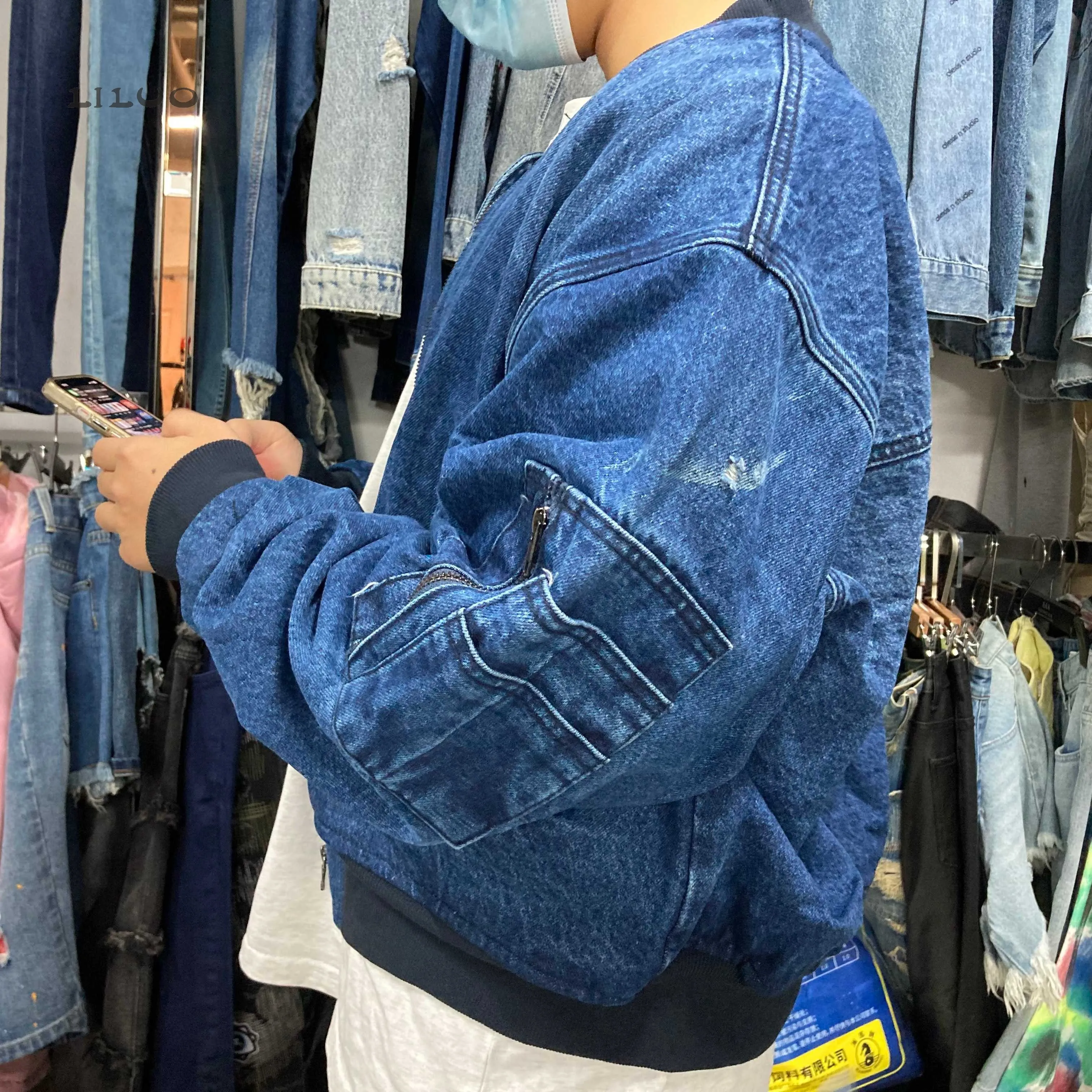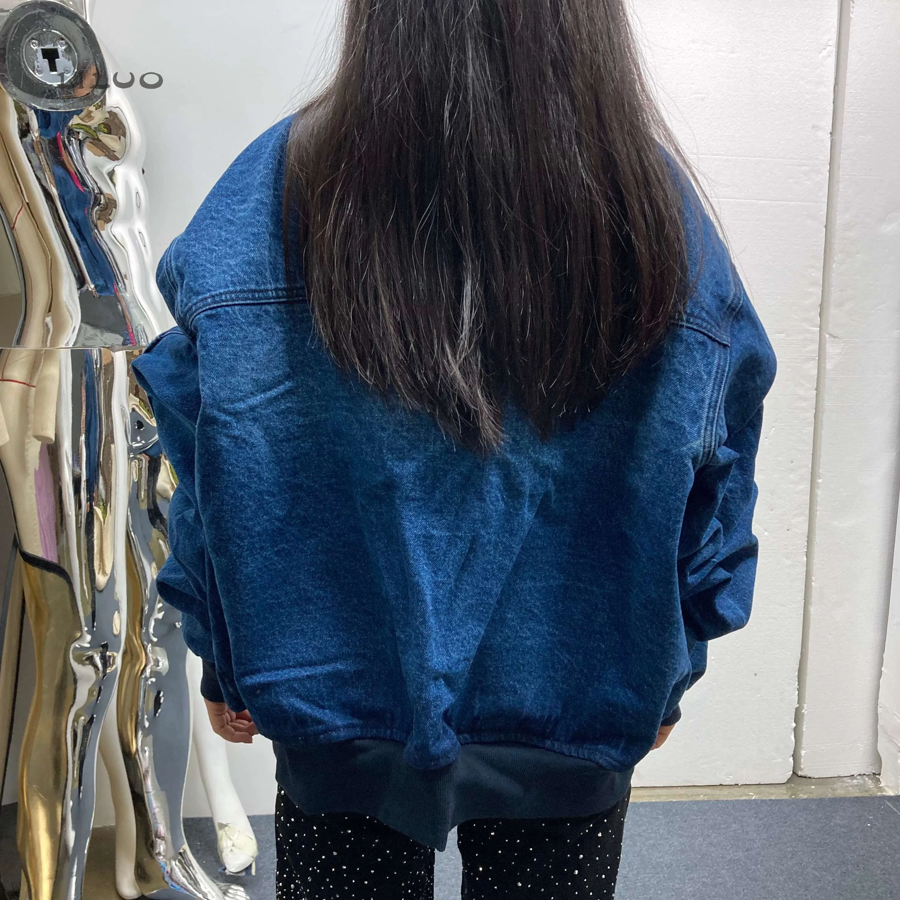Our model is wearing a size M denim jacket. Both men's and women's sizes are available for trial. We also accept modifications of